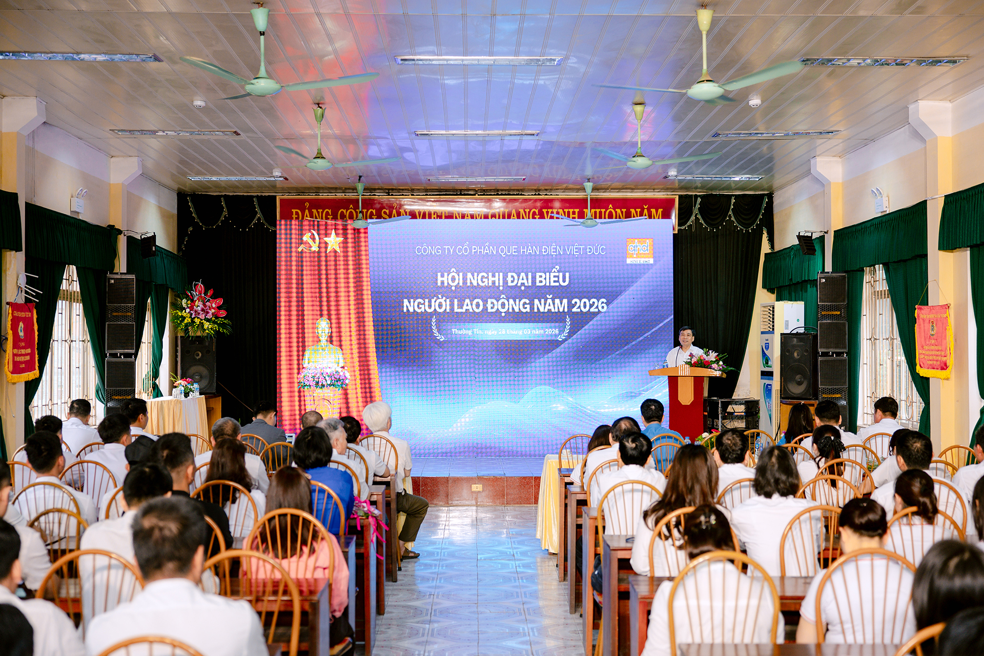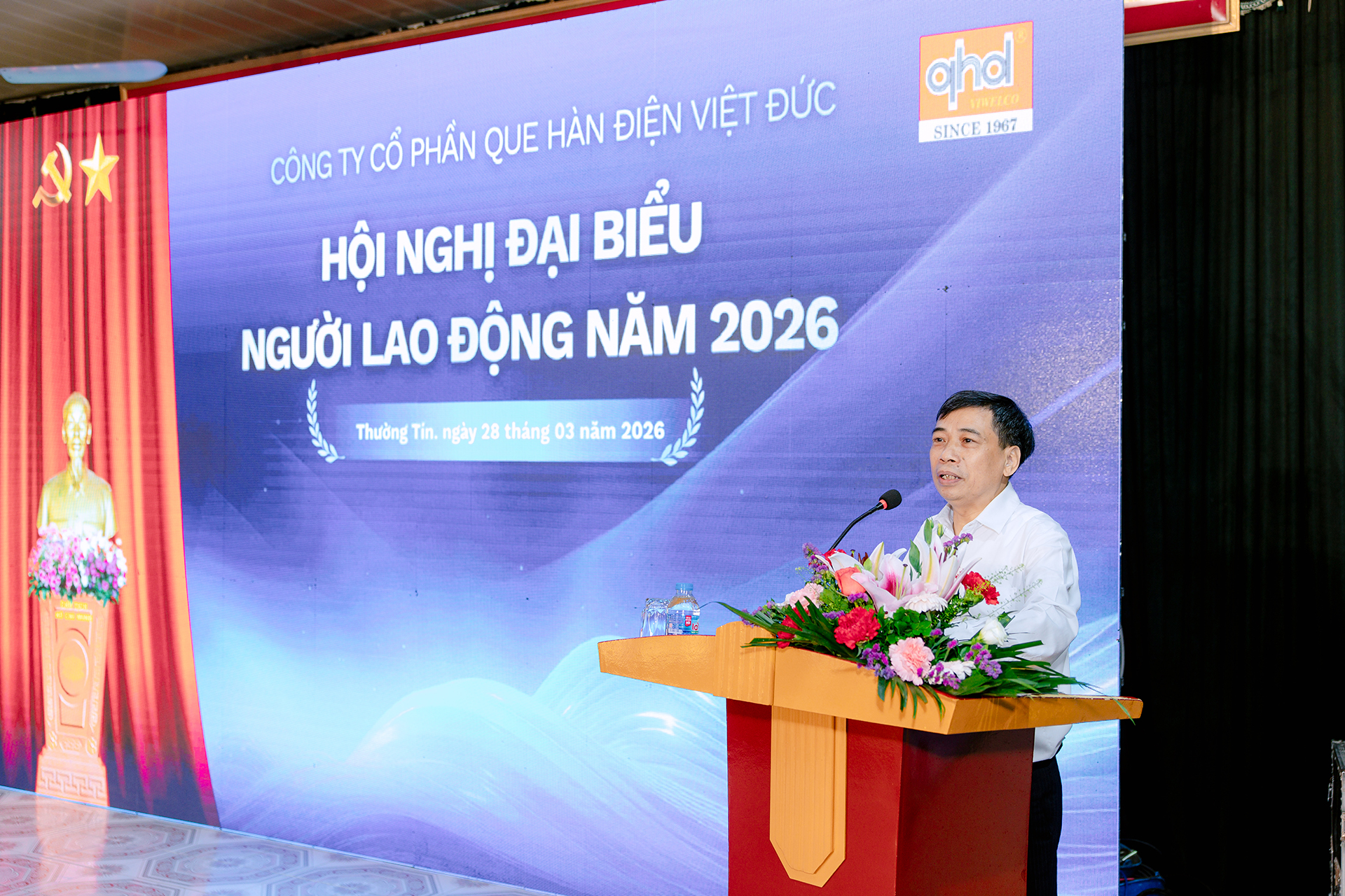 Sáng ngày 29/03/2026, tại Hà Nội, trong không khí thi đua sôi nổi và tinh thần quyết tâm thực hiện thắng lợi các mục tiêu kinh tế - xã hội, Công đoàn Công ty Cổ phần Que hàn điện Việt Đức đã tổ chức Hội nghị Đại biểu Người lao động năm 2026 nhằm đánh giá kết quả hoạt động năm 2025, quyết định phương hướng, nhiệm vụ trong giai đoạn mới.