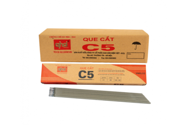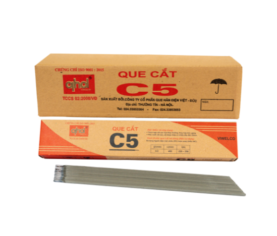 • C5 là loại que chuyện dùng để cắt các liên kết kim loại. Cắt được chi tiết có chiều dày đến 25 mm, có tính linh hoạt nên cắt được ở các vị trí mà máy cắt không tiếp cận được, hiệu suất cắt cao.
