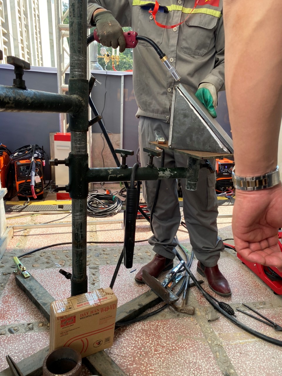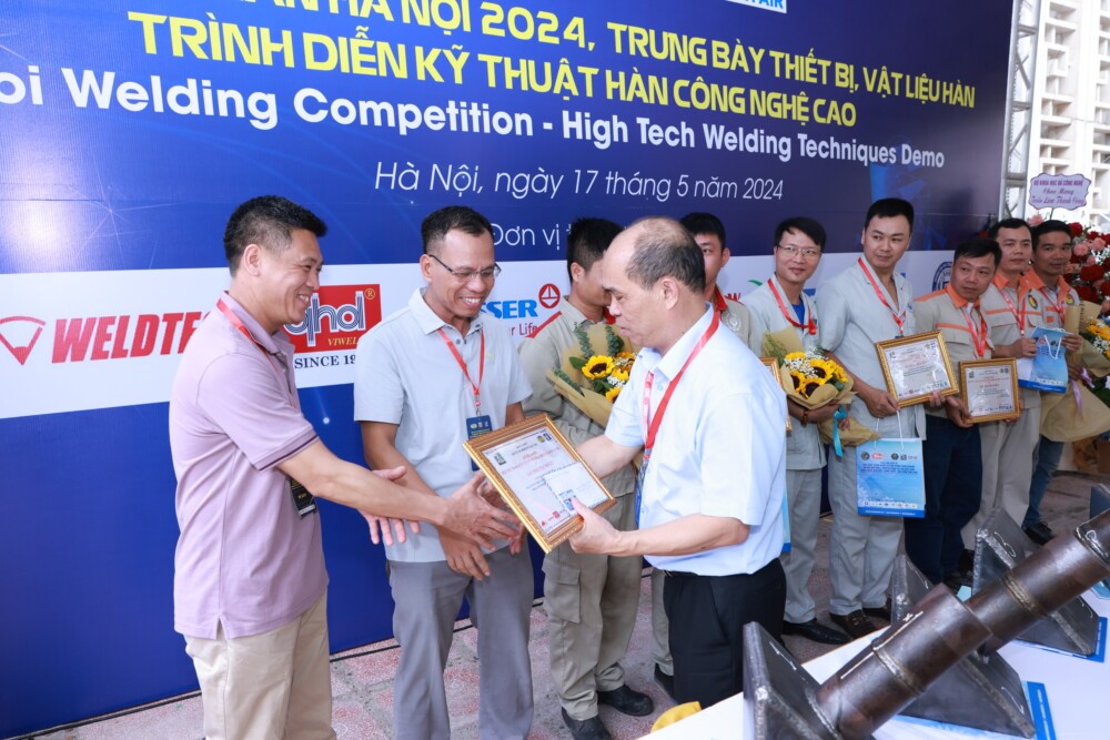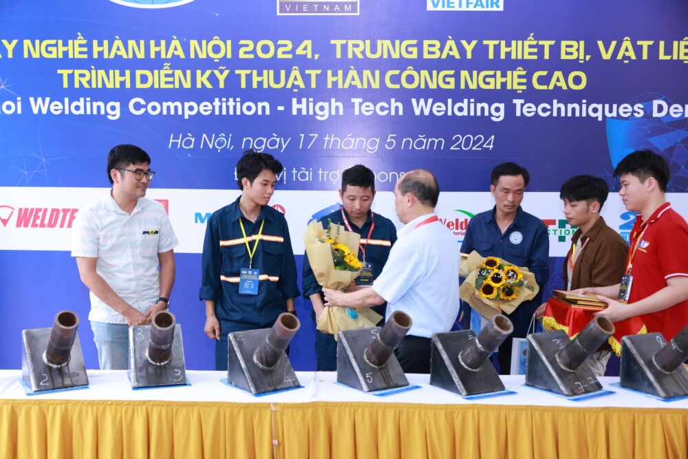Tại Triển lãm lần này, sản phẩm que hàn và dây hàn của Việt Đức được lựa chọn phục vụ tại Hội thi tay nghề Hàn Hà Nội 2024 - Trình diễn kỹ thuật hàn công nghệ cao.