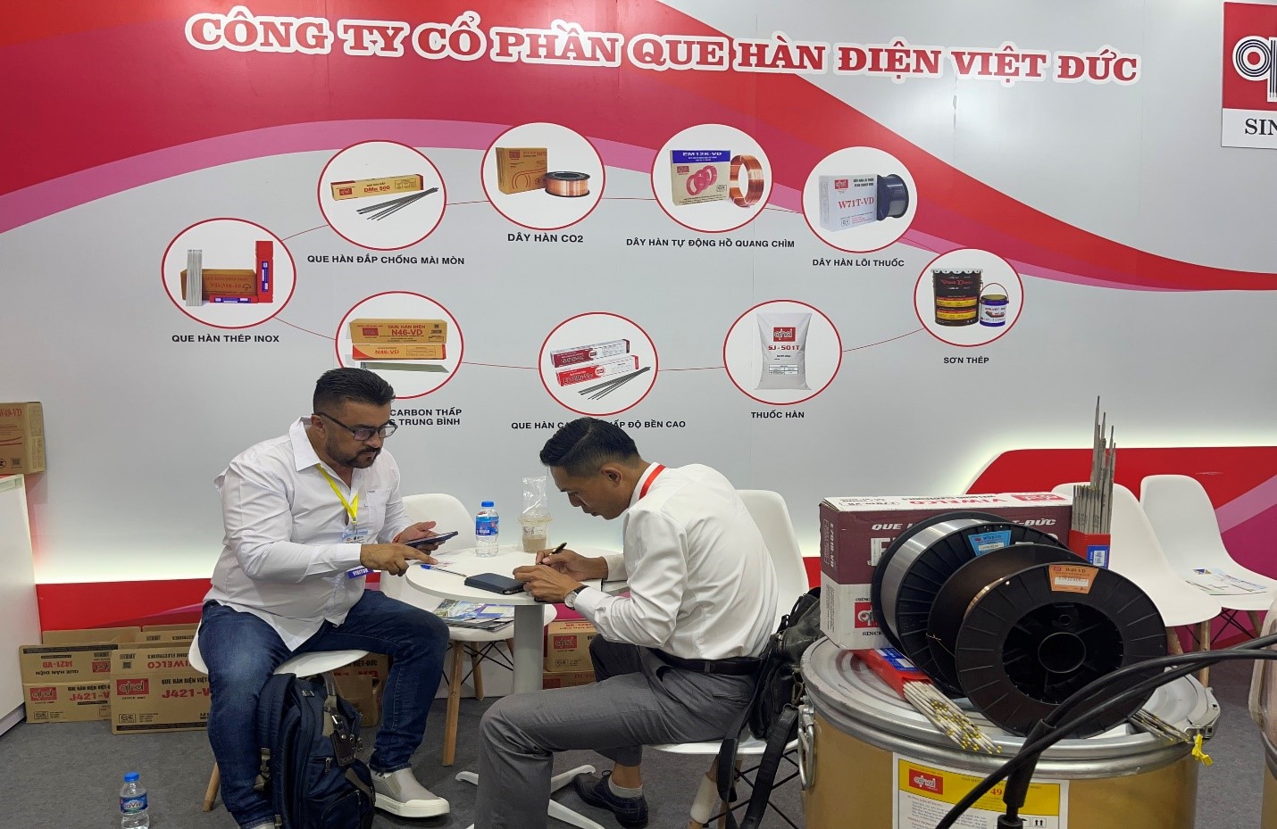Gian hàng của Việt Đức được đánh giá là một trong những gian hàng gây ấn tượng nhất và có sức thu hút lớn tới các khách thăm quan. Tại Triển lãm lần này Việt Đức đã mang tới các sản phẩm là thế mạnh của mình như; que N46, que hàn gang G33, que hàn Đắp DMn500, que hàn cắt C5, các loại que inox 308, 316 và 319 và các loại dây hàn tự động EL & EM12K (đặc biệt là thùng 400kg), dây hàn lõi thuốc W71T và dây hàn CO2 W49…